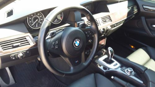 2010 Carbon Black BMW 550i with Premium and Full M Sport Packages. 4.8L V8 360 hp/260/lb/ft torque. Black Dakota Leather interior with 20-way Adjustable Heated Front Seats. Adaptive Xenon Headlights; 6-spd SAT Transmission with steering wheel paddle shifters, Sport button and 3 M-Power Levels of Speed. iDrive with Sat Nav, Bluetooth Phone, 19" premium wheels. Cold Weather Package, Comfort Access Keyless Entry, Moonroof, Auto Dimming Mirrors, Park Distance, Xenon Lamps, Adaptive Light Control, Heads Up Display projecting your map, speed and everything elese on your windshield. Factory Upgraded Exost and front Deemed Kidneys. Blue Tooth, Smart phone Jack to conect any cell phone or ipod. Tinted windows $470 package, protecting 99.9% from sun and heat and much more option too many to list.