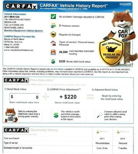 2011 528i Carfax Certified Excellent Condition Low Mile Florida Beauty Warranty on 2040-cars