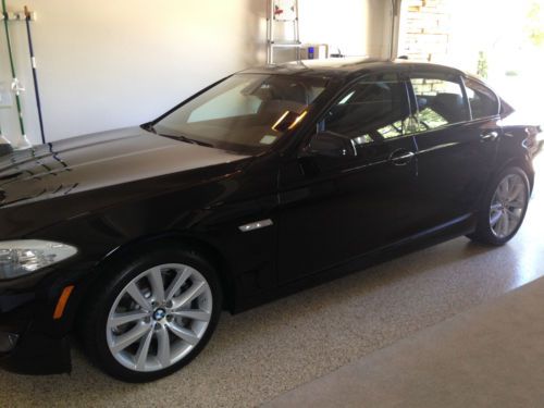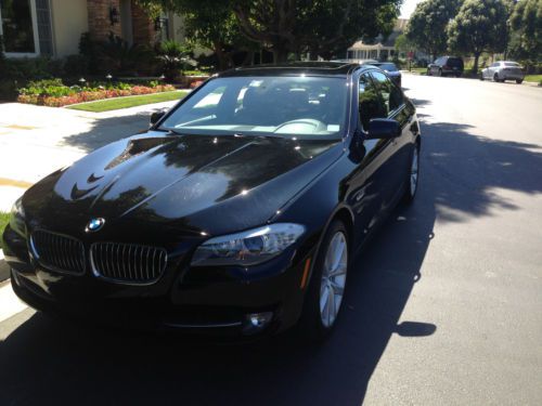 2012 BMW 535i with sport package, navigation/tech package, premium package, premium audio, self-closing trunk, shadow trim, comfort access, paddle shifters--basically everything except satellite radio and air-conditioned/heated seats, which we specifically excluded when the car was ordered. ONLY 13,100 MILES. Jet black over cinnamon Dakota leather. In-service date was 3/26/2012--bumper-to-bumper warranty (including service, brakes and wiper blades) through 3/25/2016. This car has been driven solely by my mother, always stored in a climate-controlled garage, has not seen inclement weather and has been hand washed and detailed regularly. The body, interior, trunk and engine compartments are immaculate. THIS IS NOT AN EXAGGERATION--There is not one door ding, scratch, bumper nick, windshield pit or wheel scuff. Original, matching tires with plenty of tread. No accidents or paintwork. The car has been serviced by Sterling BMW in Newport Beach, CA. Includes all keys, mats, books, etc. Paid registration in CA through 3/25/2015, which can be transferred to a new CA owner. It would be impossible to find a nicer, better optioned, pre-owned 535i--and this color combination is striking.