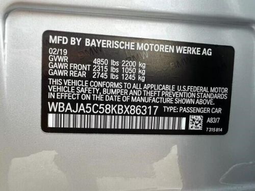 VIN (Vehicle Identification Number): WBAJA5C58KBX86317