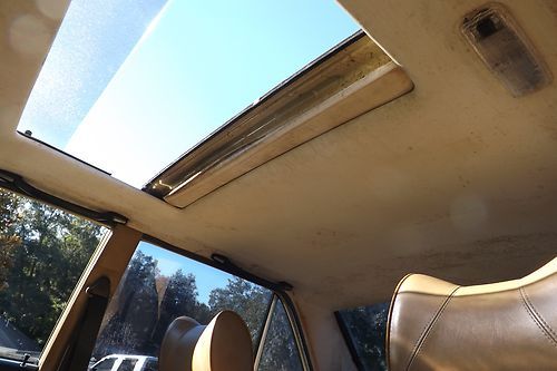 Exhaust is loud. Carburetors need jetting, I never got to this after rebuilding the engine and replacing the transmission. Rip in Drivers Seat (see picture). Two plastic light filters hanging from speedometer/RPM gauges. AC Removed but was Factory AC. Headliner old. Sunroof works but one part is needing repair and current headliner is not fully attached until I get the new part to replace - needs some TLC to close fully but works. Electric Sunroof open and closes with manual help. Plastic part that is broken on one side should be easy enough to replace but finding one may take a while. The gas lid door is slightly bent from backing up with it open, it fits fine and works but could use some straightening out. Some paint missing. Some rust (was leaking in trunk around seal but put some JB Weld to build It back up. Drivers door bottom inside has some rust. Passengers side had rust hole but put new metal riveted in and a couple giant tubes of JB Weld to seal it in. Back windows do not work.
