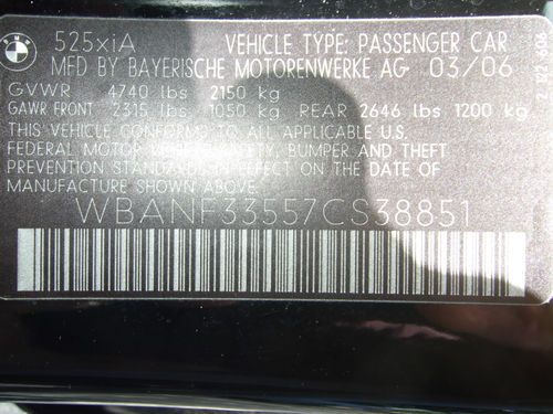 2007 BMW 525Xi AWD Sedan, black/black, 140,753 highway miles, 18" wheels, hid headlamps, automatic trans., moon roof, heated seats, power driver's and passenger seats, both keys, original manuals, no liens, clear title, service records, no warning lights on, drives excellently, recent tires, brakes, current NJ inspection, very good condition, contact Rob, 610-525-4757/610-283-9714 cell