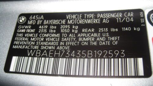 2005 Bmw 645ci Pano Roof Fully Serviced New Tires New Timing&valve Cover Gaskets on 2040-cars