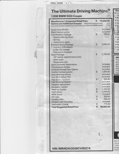 This car is in like new condition. Owner is original purchaser. Dealer installed (at delivery) Clear protection package (Clear Bra). All service done at BMW dealer -- all service up to date. Car has all options except lane change notification (see copy of sticker in photos). Garage kept, never driven in snow. After market Remus European exhaust - not loud, just nice. After market intake. Original OEM intake and exhaust will be in trunk if buyer wants to switch out. Two sets of floor mats (carpet and rubber all weather).