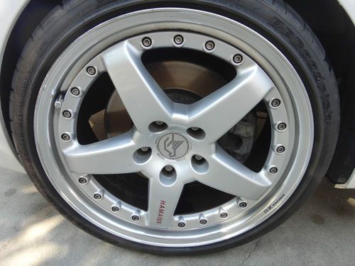 I have owned, loved and cared for this car since 8/12/2005 but due to some physical limitations need to get an auto transmission car now. I got it with 18,476 miles on it. It has always been garaged and covered and little used, never in rain. Apart from all the normal M features of this model this car is stock except for the 19" Hamann OZ Racing wheels. Theses are expensive alloy wheels and the 19" diameter much improves the gearing drivability on this car. I did retro the stock 17" wheels for a while but did not like the difference. Tires are excellent Goodyear all with lots of tread left. This car corners as fast as your brain can stand the G force. The wheels are not dented. No curb rash.