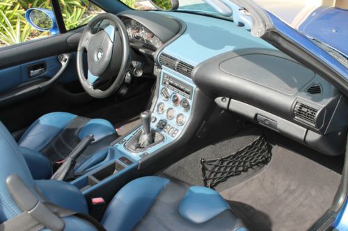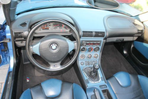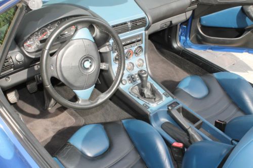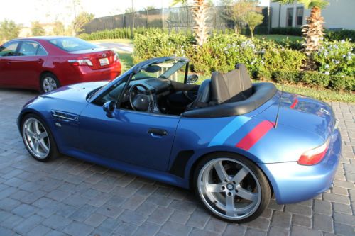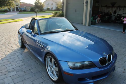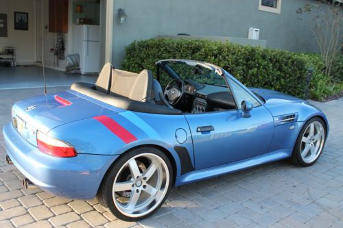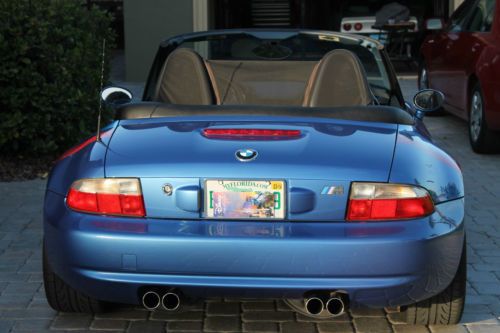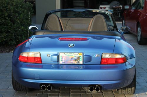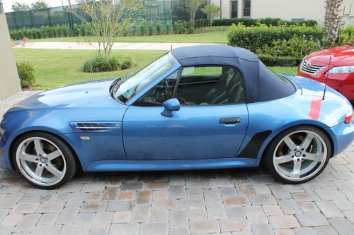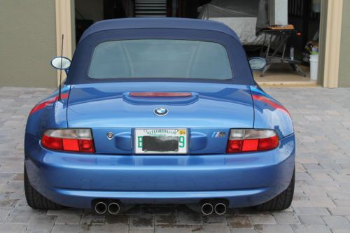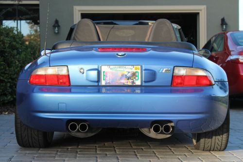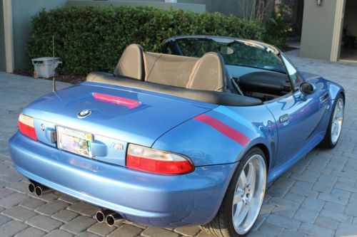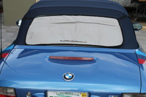 Mint condition M Roadster. Adult owned and well cared for. Recent clutch, clutch slave cylinder, brakes, rotors, lowered suspension, rims/tires, Clifford G5 Alarm system, upgraded stereo speakers, I-Pod connection for stereo, new shifter handle (illuminated), rear view mirror (dimming), convertible top cover, rear window cover to minimize creasing when top is down, interior in excellent condition, engine is 100% with only 63K miles, AC blows cold, heated seats, power seats, power windows, power locks, loaded M Roadster! Air bag light is on. Needs reset due to removal of seats to replace seat track bushings. Light came on when seat was removed. Don't have reset tool. Gets plenty of looks and complements every where it goes. No accidents, dents dings, scratches or rust. Paint is in excellent condition as is entire vehicle. Handles like it's on rails, especially with the suspension set up and super wide low profile tires. Ride is also very nice and not harsh at all. Nothing out of the norm though, actually car is exceptional. It's been adult driven and very well maintained. No time to drive car (only put 2500 miles on in the last 18 months) with two corvettes and my daily driver cars. Car is eligible for classic car insurance due the limited production and I only pay $120 for a years full coverage insurance. Thanks for looking and bidding. Will answer any questions you have and local inspection is welcome. Close to Orlando area airports (MCO and Sanford).