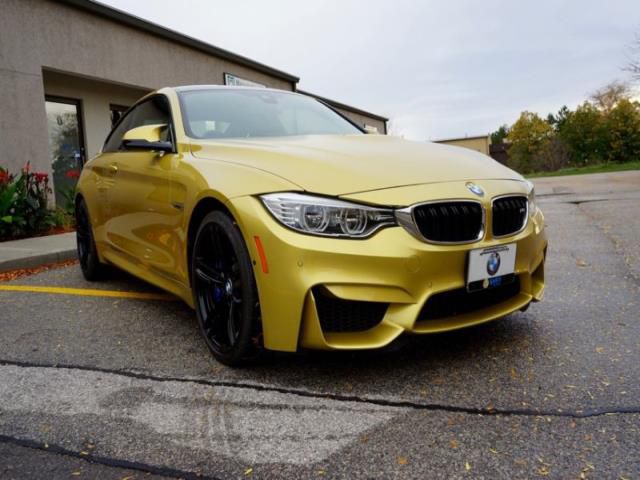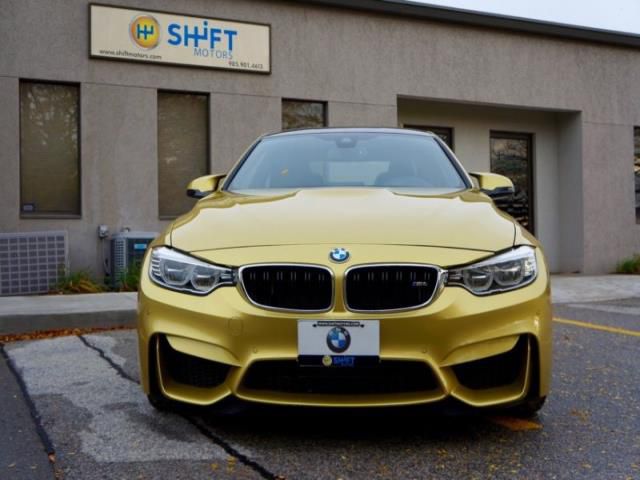 * FINISHED IN THE STUNNING COLOUR COMBINATION OF AUSTIN YELLOW METALLIC WITH A CARBON FIBRE ROOF ON BLACK FULL MERINO LEATHER WITH CARBON FIBRE TRIM AND EQUIPPED WITH THE M DCT TRANSMISSION, THIS 2015 BMW M4 IS FULLY LOADED * * EQUIPPED WITH PREMIUM PACKAGE, EXECUTIVE PACKAGE AND CONNECTED DRIVE SERVICES, OPTIONS INCLUDE MULTI-FUNCTION HEATED STEERING WHEEL WITH PROGRAMMABLE MDRIVE BUTTONS, KEYLESS COMFORT ACCESS AND STARTING, REAR VIEW CAMERA WITH TOP AND SURROUND VIEWS, POWER HEATED ADJUSTABLE WIDTH FRONT SPORT SEATS, PARK DISTANCE CONTROL, DYNAMIC CRUISE CONTROL, ADAPTIVE LED HEADLIGHTS BMW ON-BOARD NAVIGATION, HARMON/KARDON SURROUND SOUND SYSTEM, BLUETOOTH TELEPHONY, ANTHRACITE ROOFLINER, HIGH-GLOSS SHADOW LINE EXTERIOR TRIM, 19 INCH M DOUBLE SPOKE BLACK ALLOY WHEELS + MUCH MORE!!! * * THE 2015 M4 IS ALL NEW FROM THE GROUND UP AND BETTER THAN EVER HAVING HAD A HEART TRANSPLANT IN THE GUISE OF A TWIN-TURBO 3.0-LITER INLINE-SIX THAT MAKES 425 HP AND 406 LB-FT OF TORQUE.