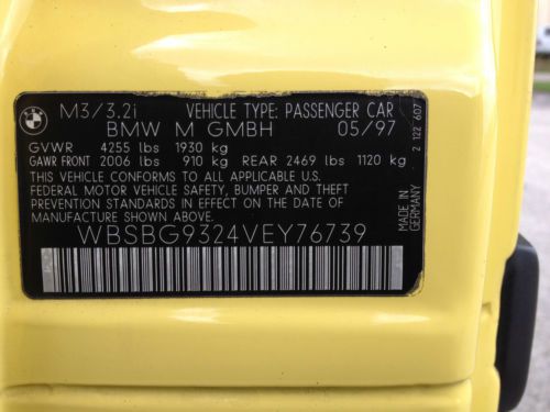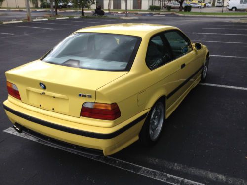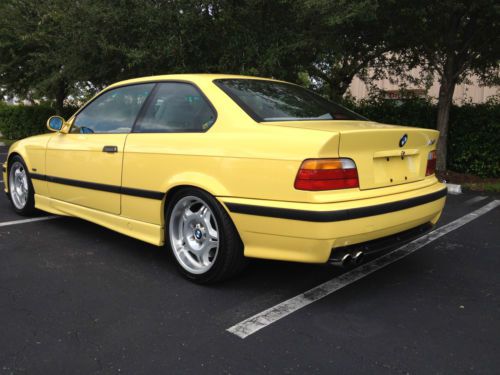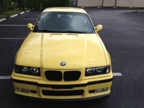 UP FOR AUCTION IM SELLING 1997 DAKAR YELLOW M3 COUPE.5-SPEED MANUAL TRANSMISSION,INTERIOR HAS CLOTH VADAR MOTORSPORT SEATS THAT ARE IN GOOD CONDITION.EXTERIOR PAINT IS IN EXCELLENT CONDITION.JUST RECENTLY INSTALLED NEW DEPO HEADLIGHTS,NEW FOG,LIGHTS,AND MARKER LIGHTS.THE CARS RUNS EXTREMELY WELL WITHOUT ANY ISSUES.CAR IS LOWERED ON H/R LOWERING SPRINGS AND NEW BILESTIEN SHOCKS.CALL ME FOR ANY QUESTIONS JOE AT 954-650-0950 THANKS......