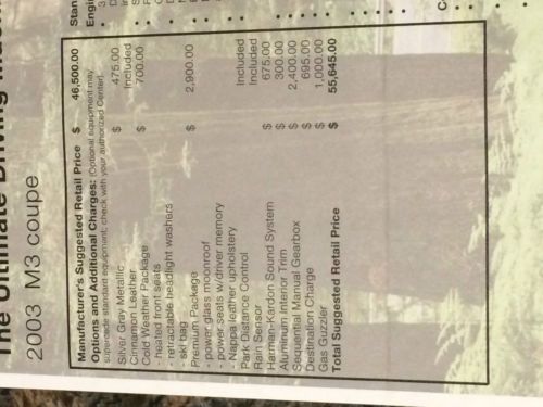 2003 BMW E46 M3 The Ultimate Driving Machine Please note that the MILEAGE DISCREPANCY indicated on the attached AutoCheck report does not agree to the Motor Vehicle Dept. records, as indicated. This vehicle does not have an odometer problem or a mileage discrepancy. I contacted the Registry of Motor Vehicles and confirmed that there is no mileage discrepancy inidcated in their systems. I have every annual state inspection record showing the actual mileage on the car year by year for 11 years. I believe that the AutoCheck system has a logic function that is reporting a problem when in fact no problem exists - very fustrating to not be able to resolve this. Please call me with any questions you may have and I will be happy to send you copies of all the records indicating the mileage on the vehicle.