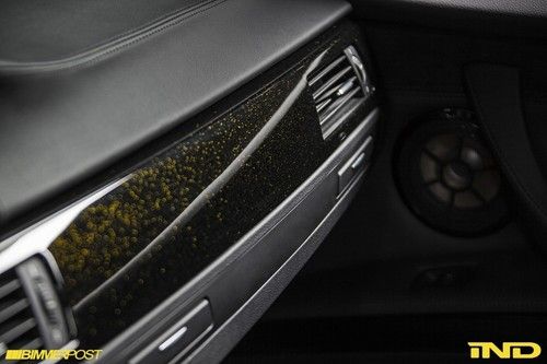 The bulk of the effort was spent on perfecting the car’s interior. The already fantastic BMW Performance seats were disassembled completely and re-stitched with Dakar Yellow thread in both the seat’s perimeter and BMW Performance logo located in the headrest. The seat backs were repainted in a high gloss black with yellow flake, designed to match the custom IND painted interior trim already in the car. The trim pieces in the seats were refinished in a simpler gloss black to give the seats an overall subtle look that could have come directly from BMW.