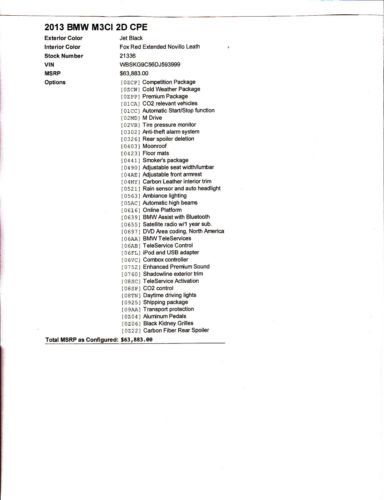 Mint 2013 Bmw M3 Competition Pkg. 2d Cpe. 6sp Manual. Jet Black/fox Red on 2040-cars