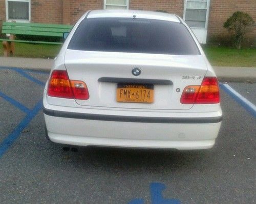 I HAVE A 2002 WHITE BMW 325I, SHE IS IN VERY GOOD CONDITION, WHITE/BLACK LEATHER INTERIOR, SUN ROOF, AUTOMATIC, 6 CYL , ALLOY WHEELS, FOG LAMPS , TIRES ARE STILL IN PRETTY GOOD CONDIITION. SHE HAS 88,852 MILES,RUNS GOOD, NEEDS FRONT END ALIGNMENT, SMOKE FREE CAR. LOW PROFILE CAR.