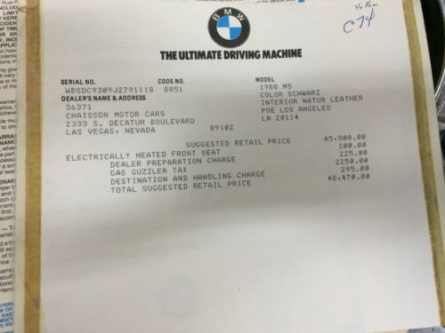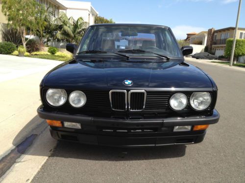 A very rare and super clean 1988 BMW E28 M5 with Euro bumpers for sale. It has been meticulously maintained and includes service records and original window sticker. Leather is in excellent condition. No dashboard cracks. No accident history. This car has been gone through and is ready to be enjoyed. The pictures speak for themselves and the car is mechanically excellent. Looks and drives great. Stored in a climate controlled garage. The original wheels which need refinishing and new hard to find center caps are included, but with no tires. Sold as is. No Returns.