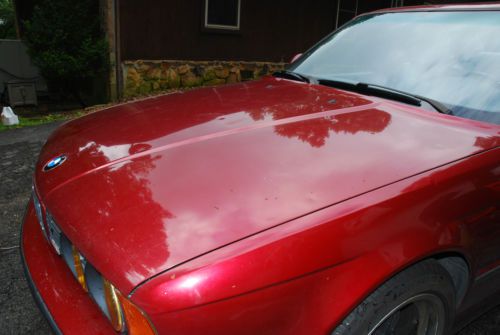 1993 BMW M5 Calypso Red! After several years of ownership, it is time to put my trusty E34 M5 up for sale. It is my understanding that this is one of two Calypso Red '93 M5s imported to the US. Why am I selling: I have too many vehicles, and too many projects. Something has to go. What's wrong with it? Considering the mileage, surprisingly little. It does NOT currently run. The front crank hub went out on it (a common E34, S38B36 occurrence). As the crank hub contains the Crank Position Wheel, it will not run. Also, the vehicle has minor hail damage, and the driver's seat bolster is beginning to tear. Finally, the inserts on the door cards are starting to pull away, and the headliner and packing shelf material have started to pull. What's good about it? A lot! The engine has good compression (see photos), no particles in the oil, and no sludge or varnish in the cam areas. The transmission shifted very nicely, and the clutch felt good. It has a new radiator (last fall), and a new A/C condenser (just before the crank hub went). The A/C has been converted to 134A, and blows nice and cold! Like most S38B36 engines, it does seep some oil in the came chain area, but it doesn't gush or leave unsightly puddles. The car is, for the most part, all original. It wears most of its original paint (it was involved in a minor accident requiring the rear bumper and left rear quarter panel to be repainted). The carpet should clean up nicely, as should most of the leather. While it was running, everything worked. All window motors function (the passenger rear needs attention). The power seat function properly (including the power headrests). And both the cassette and CD players function properly. The radio display is going bad, however. The wheels were refinished when it was in the shop for the bumper, and the throwing star centers do come with the car. They have not been refinished, but are in good shape. The tires are in great shape (Michelins) with around 70% of their tread left. If you're looking for a good car to fix up over he winter, I don't think you can go wrong with this one. If you're looking for cheap transportation, please look elsewhere. This car needs some work. It's mostly labor, and a handy car guy or gal should have no problem bringing it back to its former glory. Please do not hesitate to ask any questions you might have. Viewings can be arranged as well. The car is located in the Lenoir City, Tennessee area, just south of Knoxville. Thanks, and good luck bidding! Bill P.S. I have been asked about trades/partial trades. The only trade I would consider is a Nissan 300ZX (Z32). |