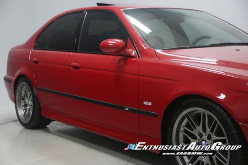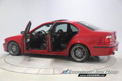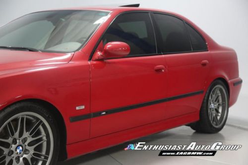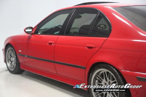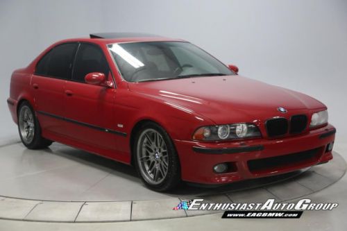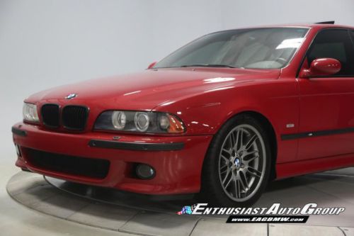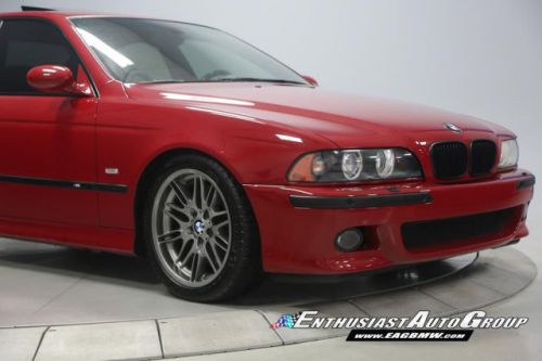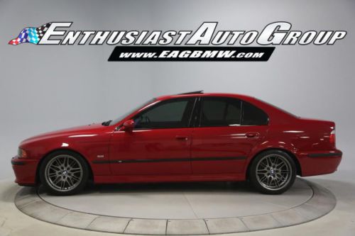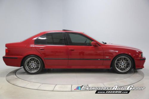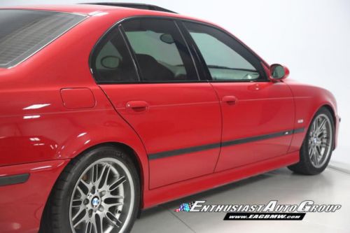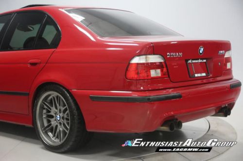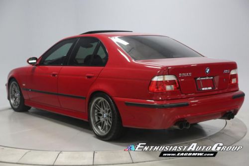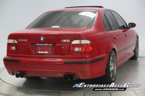 *New Arrival* Imola Red on Black Leather Interior, Well-Maintained, Dinan Enhanced E39 M5! Dinan Performance Upgrades include: Carbon Fiber Cold Air Intakes, Stage 2 Engine Performance Software, Dinan Free Flow Mufflers, Stage 2 Suspension with KONI Dampers, Front Strut Tower Brace, Adjustable Rear Sway Bar w/upgraded brackets, Dinan Badge and a Audiovox Mediabridge interface. Nicely Equipped from BMW including Extended Leather, Widescreen MKIII CD Navigation System, M Audio with Enhanced Bass, Rosewood Interior Trim, Park Distance Control, Folding Rear Seats, Power Rear Sunshade with Door Blinds, Alcantara Headliner, Homelink Garage Door Opener, Cold Weather Package with Heated Front Seats, Headlight Cleaning System + Ski Bag, Xenon Headlights with Angel Eyes and Rear Lip Spoiler Delete. This M5 is super nice throughout! This M5 has resided in California and Arizona since new, therefore, no rust or corrosion anywhere on or around this vehicle. Garage kept in a climate controlled garage and protected from the elements. Enthusiast Auto is completing a Comprehensive Pre-Purchase Inspection and Work Order to ensure the integrity of this M5. Service Highlights Include: Inspection 2 Service with fluids, filters + spark plugs, valve cover gaskets, rear brakes (rotors, pads + sensor), and new Michelin Pilot Super Sport tires. This beautiful E39 has had excellent BMW ownership with a meticulous maintenance schedule; annual oil changes + inspections. Lots of Service History Included. Clean Vehicle History Report with No Accidents. Adult Owned, Non-Smoker. Please Call or email to obtain a Pre-Purchase Inspection Report, Build Sheet, Condition Related Details, Vehicle History and 100+ Detailed Photos; 513.554.1BMW (1269) www.EAGBMW.com Enthusiast Auto Group is a highly specialized automotive facility focused on late model BMWs. In addition to BMW sales, we offer precision automotive service and performance upgrades. Our pre-owned inventory is meticulously selected with the highest quality standards then thoroughly inspected and serviced by our master BMW technicians.