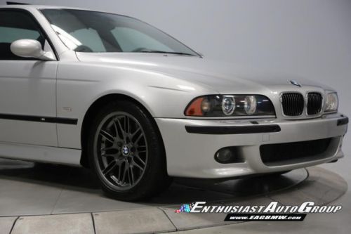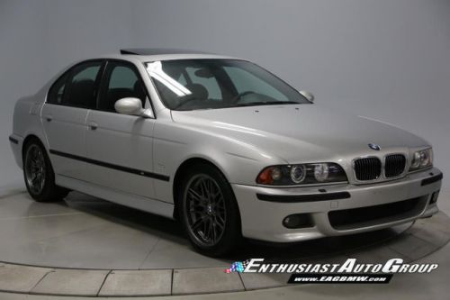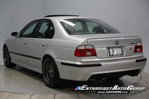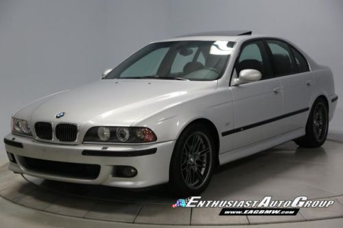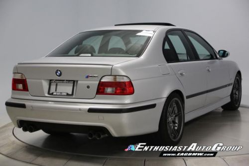 *New Arrival - Repeat Visitor* Titanium Silver over Black Leather, Very Clean, Low-Mileage, Stock M5! Nicely Optioned with: Sport Interior, Navigation System, Titan Interior Trim, Premium Package, Cold Weather Package, Alcantara Headliner, Park Distance Control, Power Rear Sunshade with Door Blinds, M Audio with Enhanced Bass, Split-Folding Rear Seats, Xenon Headlamps with Angel Eyes, Keyless Entry with Alarm, Homelink Universal Garage Door Opener and Power Sliding Moonroof. This car is very nice inside and out! Driver enhancements include Dinan Short Throw Shifter, Dinan Stage 1 Engine Performance Software and iPod Connection. Clear Bra applied to the leading edge of the hood + front bumper to protect the paint from stone chips. This M5 has been responsibly owned and properly maintained since new! This M5 was owned by EAG in October, 2011 at 37k miles and received an early Inspection 2 Service with fluids, filters + spark plugs. Since then this car has resided in Arizona with a responsible owner. Enthusiast Auto will be completing another Comprehensive Pre-Purchase Inspection and Work Order verifying the integrity of this M5 as a turn-key, needs-nothing car. Current Service Highlights Include: engine drive belts, valve cover gaskets, coolant flush, brake fluid flush, power steering lines, front thrust rods, rear upper control arms and upgraded EAG aluminum rear sway bar brackets. This car is fully sorted + Ready To Go! Complete car with all keys, books, manuals and Service History. Clean Vehicle History Report with No Accidents + No Issues. Adult Owner, Non-Smoker. For more information; Please Call: 513.554.1BMW (1269) www.EAGBMW.com Enthusiast Auto Group is a highly specialized automotive facility focused on late model BMWs. In addition to BMW sales, we offer precision automotive service and performance upgrades. Our pre-owned inventory is meticulously selected with the highest quality standards then thoroughly inspected and serviced by our master BMW technicians.