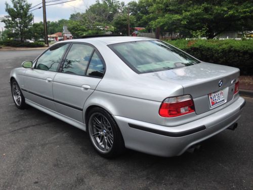 I am selling a 2002 BMW M5 with 60,650 original miles. This car is adult driven and is in Pristine condition as you can see from the pictures. This car is fully stock and has never gone under any kind of modifications. Fully loaded with all available options Premium Audio, Alcanata Headliner, Navigation etc. The interior is in excellent condition and shows very few signs of wear. Very rare black on grey 2 tone leather with alcantara headliner.10/40 split rear seats, full navigation screen. Clutch grabs nice and strong, I am only selling the car as I will be traveling a lot in the upcoming months for my job and I don't want to keep this car around just sitting there as I won't be using it at all. I am starting the bid low, but I am open to offers. All the BMW enthusiasts already know how hard it is to find this car in this condition and with low miles. There are minor scuffs on front and rear bumper and the usual curb rash on wheels thats to be expected on the car 12 years old. I have a lot more pictures so please don't hesitate to email me if you want pictures of any part of the car. Happy bidding and please don't hesitate to contact me with any questions or concerns. Please have financing ready before bidding. I have clean title in hand and I am ready to sell.