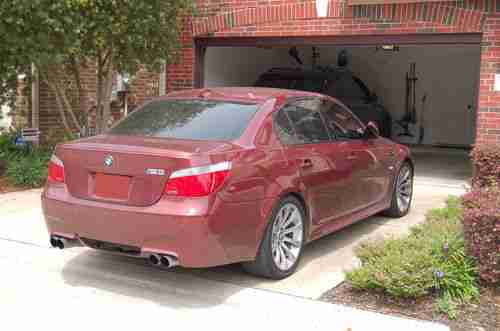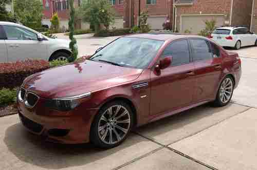 Here is my gorgeous 2006 BMW M5 Sedan with only 63K miles. 507HP V10! This car is in fantastic condition both inside and out This car features the rarese exterior color: Indianapolis Red. Interior is black leather and is loaded up with a ton of highly desirable options like Navigation, Comfort Access, ParkDistance Control, Sunroof, Logic 7 Audio, multi-contour seats that adjust automatically in high speed corners to keep you in your seat, and so much more.