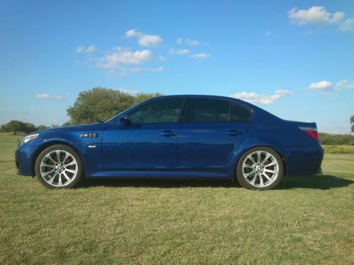 Our 2006 BMW M5 (Mr B) is a dream inside and out. Active side bolsters in the seats hold you firmly to the air conditioned/heated leather while you make otherwise mundane drives your own racing circut. The potent 507hp V10 is both civilized and exhilarating, enticing you to squeeze the throttle just a bit more everytime. That said, half the fun of an M5 is going slow, and seeing who twice, and gives an approving nod. Our M5 has been our car of choice for visiting family hours away. He's been a faithful road companion and has made the trips much more enjoyable. He has a recent 36k mi service, a transferable 100,000/4yr warranty, a great personality and awesome presence. The interior is immaculate white leather with black Alcantara headliner and wood trim accents. The hand stitched M steering wheel with paddle shifters has commonly used controls mounted on the spokes for easy access. The heads up display is bright and right where it should be for quick checks of the speed and RPM. 7 speed SMG transmission is firm and with auto blipping of the throttle, enhances the driving experience. Blemish free inside and out except a few from errant highway pebbles. The M wheels, brakes and rotors are in excellent shape.