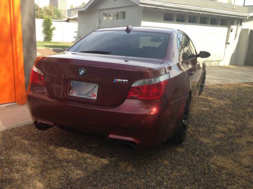 This is a meticulously maintained 2006 BMW M5 that treat you to an unparalleled combination of luxury and performance. This car has been pampered and driven mostly on weekends by a BMW enthusiast. Engine is as strong as new, suspension, transmission, interior, electronics... all in perfect working condition. Clean Carfax/Title. Car comes with a fresh oil change (5/24/14) at the BMW dealer. All maintenance has been done at the BMW dealer or BMW-specialized shop. Car is loaded with the rare and desirable active luxury seats (cooling, heating, active bolsters and torso adjustment), rear sunshades, comfort access (keyless start), tinted windows, and much more. Interior has a rare black leather/light wood combination that gets compliments from everybody. The only two noticeable blemishes are a small ding on the rear driver-side door and on the front passenger-side door. Car comes with sport exhaust (loud and fun) and also the original BMW exhaust. |