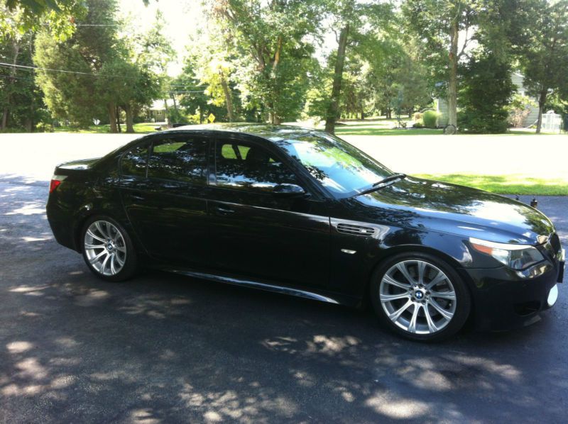 2007 BMW M5 Black Sapphire Metallic Paint with black merlino leather interior 7speed SMG Transmission. 65,400 miles. Factory options include heated seats with memory, comfort access, heads up display, suede headliner, Glass sunroof, folding rear seats, sunshades or rear windows and power rear shade, park distance control system, adaptive headlights, I drive navigation, 6 disc cd, premium audio package, brushed aluminum interior trim, //M rear spoiler, and more. This vehicle has been outfitted with a custom dinan exhaust, dinan software, H&R springs, RPI intake w scoops, bmc filters, black front grilles, halogen lights, angel eyes, and window film. The car sounds amazing and drives perfect there are absolutely no issues of any kind mechanically. The car has been serviced regularly and I have all paperwork. A new clutch kit was just installed and car was serviced. In terms of condition the interior is excellent