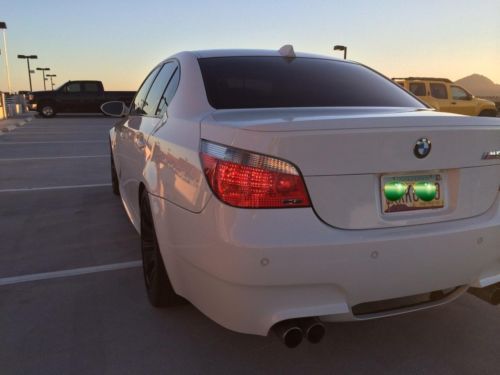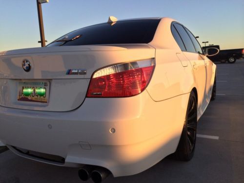 2007 M5. 7 speed SMG, 500+HP, very clean and well maintained. 101K due to highway driving. Car has navigation, AC/heated front seats, active seats. Car is loaded with all factory options. Clutches replaced and all service kept up to date. Mechanically flawless. Clean Alpine white exterior, grey/black interior, 19" factory wheels powder coated black. Great tires. Car is a definite head turner. No warranty and car is sold as is. Buyer is responsible for shipping costs. |