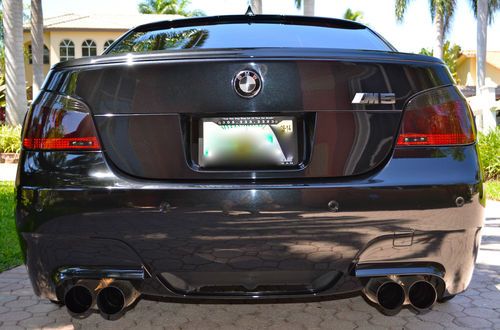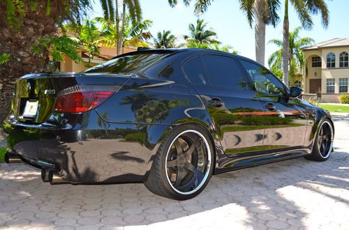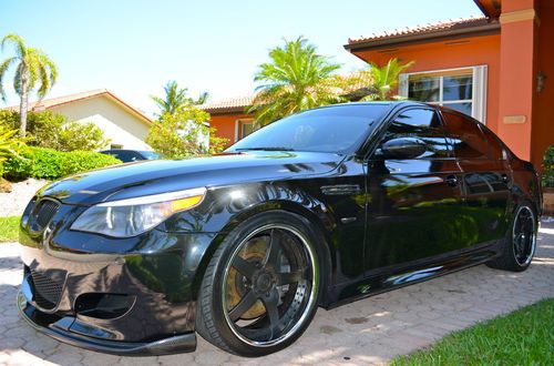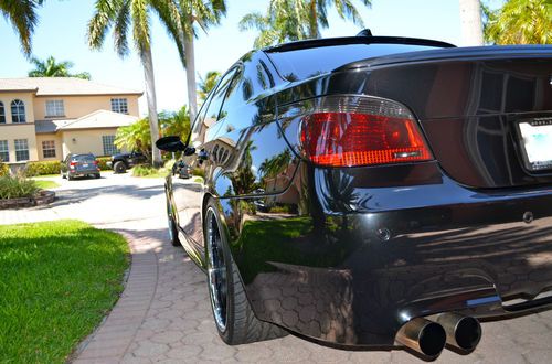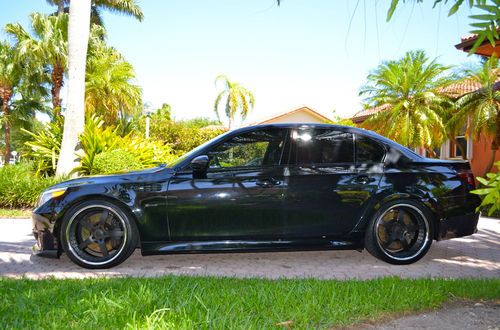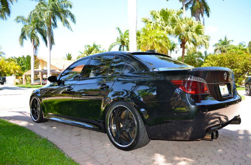 This M5 has been pampered since the day it was purchased, it is a very desirable black on black with custom Strasse Forged wheels with brand new toyo proxies tires and professionally lower for that amazing look, it has a custom exhaust with valvetronic system for different types of sound ( f1 style and everyday drive) that sounds better than any Ferrari and the very well known and amazing SMG 7 speed sequential gear box, maintenance has always been done by South Motors BMW in Miami, rear seats have never been used, never smoked in, it has front carbon fiber spoiler, rear spoiler, carbon fiber mirrors cover, tail lights are smoked to match with the car, over 20k were invested in this car. This V10 is a massive power plant capable of giving you as much excitement as you can possible have in a four door sedan, the car is in immaculate condition, it has two brand new 12 inch MB quarts sub woofers. The car has all the options except heads up display. trades may be consider. Please follow this link to see a video of the car http://youtu.be/gUVVlmm8k3w