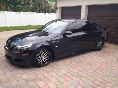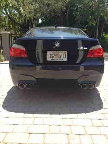 Auction is for a 2008 BMW M5 sedan in Monaco Blue with Coral Red Leather Interior. The car is absolutlely in mint condition inside and out. This vehicle has the V-10 525 hp naturally aspirated motor. Rear wheel drive with a 7 speed SMG F-1 style transmission that can be driven in automatic or using the paddle shifters. The car has 47,xxx original miles. Paint is in excellent condition and interior is spotless. The car has H&R springs installed (factory springs included) and 20" Lexani concave wheels with new Nitto Invo tires. Magnaflow exhaust give this beast a awesome sounding tone. Radio, CD, DVD, Navi, Heads-up display, sunroof, factory alarm, M5 logo mats, tinted windows. The car drives like new and is extremely tight and has never been abused or raced. Car has a rebuilt title and I have pics before repairs of the minor damage it sustained to the rear passenger side door. Car is in excellent condition and drives incredibly. I have the title on hand. Buyer pays for all shipping or transport fees. A real head turner, get comments on it everywhere I drive it. Own a mint condition M5 supercar for a great price. Feel free to e-mail me at rva33145@bellsouth.net or call with questions 786-236-1961.