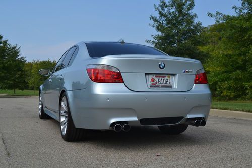 Up for sale is a 2006 BMW M5. 54,600 miles. Silverstone color. New tires at 53,000 miles. Michelin pilot sport PS2. Cost $2,000. Up to date on all services. No engine lights or warning lights on dash. Always serviced at a BMW dealer. Rims are flawless, no curb rash. No door dings. Body is in excellent conditions for a 2006. Black leather interior with wood grain trim. Heads up display. V10 engine with SMG transmission. Heated front seat. Sirus/XM ready. Comes with owners manual and 1 key. If you have any questions please let me know. Serious buyers only! Buyer is responsible for picking up car from 40245 zip code. The reason I am selling, I have two small children and need a more family friendly car! I am car fanatic and this is by far the most fun and best driven car I have ever owned.
