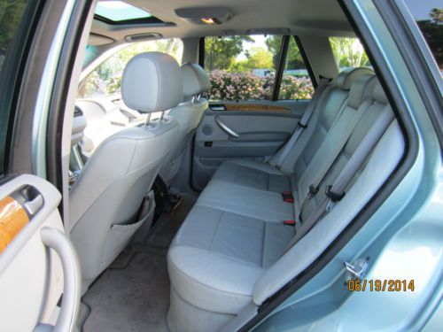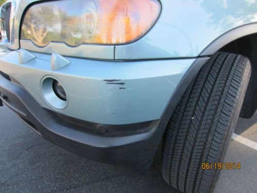 This is one car that just would not die --- My wife took it from new to 160K miles and just got tired of this car. Purchased a new X5 in 2011. Kept it as 3rd car, but I just got a new BMW too, so this became a 4th car that we no longer need. The car has original engine and transmission and never had trouble in both. Car takes about 1 quart oil in between oil changes (always have used synthetic) that BMW service indicator tells -- usually around 10K~12K miles. The automatic transmission shifts no different than when it was new -- no gear shifting up or down issues. Always passed California Smog test with no issues. New Continental all-season tires with around 4000 miles on them. Always maintained properly and used OEM replacement parts by my mechanic. Recent (3 yrs) major repair/maintenance noted below. It should be self-evident that this car has been well maintained/repaired promptly. 2014-02 (191K miles) New Tires, Heater/AC blower motor resistor replaced. Oxygen Sensor replaced. 2013-12 (189K miles) Fuel gauge sending unit replaced. Front-end Tension Strut, ball-joints, etc, replaced (about time/miles to do this). 2011-01 (176K miles) Radiator reserve tank replaced. Washer pump replaced. Battery replaced. 2011-01 (176K miles) Transfer Case Assembly ("drive train") replaced w/ new OEM parts (over $4K - only major mechanical repair) 2010-04 (155K miles) New brake pad, rotors, etc. Note: All four power window failed (not motors, but plastic mechanical parts, a common problem, and has been all repaired/replaced -1st one around 50K miles, and last one around 130K miles). Now for the condition of the car. All the functions, every indicator lamp, control, etc, work on this car -- every flaw that is known to me is listed below (after the options). The paint is in just amazing shape -- the car was NOT waxed before pictures were taken -- the shine indicates the original clear-coat (over metallic green-grey color) still in great shape and not oxidized. AC/Heat works really well -- no different since new. Spare tire is full size, all OEM included tools intact (never used), Two key/remotes (one well used but fully functional and one like-new), one service key plus a plastic key, and owners manual in the glove compartment. Bluetooth hands-free (Motorola T505 aftermarket) will be included and left in the car. This car has full option (premium, cold-weather, etc), minus sports package. That means, - Navigation (factory, and western USA map included) - Leather and wood trim. - Rear privacy tinted (factory) windows, and window shade (factory) - Rear seat, split 60/40 and power reclining on each part. - Heated Seats (two front) and six way power seats, and head-lamp power washer jets - HID head lamps. And the standard features for BMW X5 2002 could be had through searching internet. Cars.com has a good summary, but there are others. List of Flaws - Paint scrapes on front bumper -- both sides (pictured) - Center armrest -- odd but only this armrest leather surface is visibly worn. - Center armrest -- there are two storage area, main, and "cell phone" area. the latch open for the "cell phone" area is stuck open -- and is held by removable putty -- thought about just super-gluing this latch shut but did not. You could. - Small tear on door panel (pictured) - One of the park-distance sensor on the rear bumper is held (completely secure and tight, but...) by wire (pictured) - A few visible "parking lot" dings - no damage to paint but visible. - Navigation LCD screen has developed display "dead" region on lower right side, about and less than 0.5" by 1" area (pictured) at about 130K miles. Further expansion of this LCD screen "dead" area has not expanded in recent years. - Back of the driver's seat "magazine"pocket is a bit stretched out (pictured). The other magazine pocket is not. - Trunk mounted 6 CD changer removable cartridge has a stuck CD -- probably repairable but not functional, but sold AS-IS. - Car had low-speed accident w/ damage to the rear at around 30K miles -- bumper and rear panels replaced/repaired by new parts. - The trunk/rear window is not original OEM -- was broken into at around 160K miles, and replaced with non OEM glass (i.e. same part and spec, but no BMW logo found on this glass, BTW, rear defroster works fine as expected). Note: Turtle sticker on the trunk window is on the outside and removable by peeling it off. Note: Noticed that the Autocheck reports 1st accident (low speed rear damage) correctly, but 2nd accident listed for 2014-04 is in error. There was no incident/accident on this car (my wife's X5 -2011 model did have a minor accident at that time under the same insurance company). |