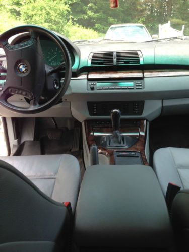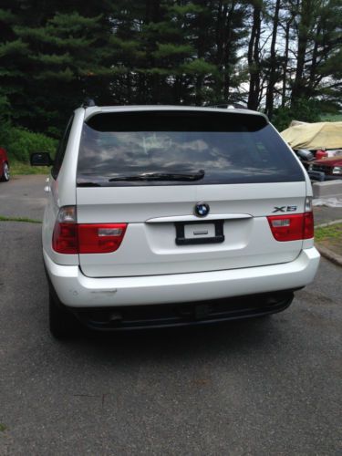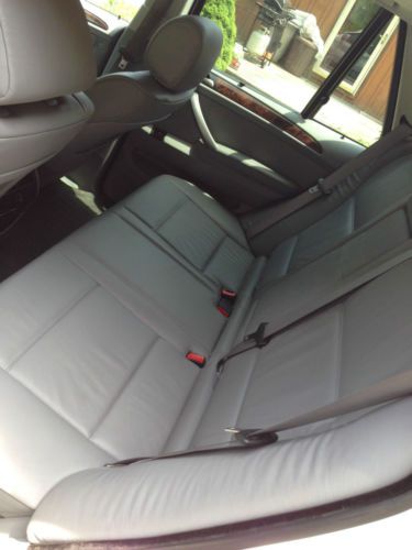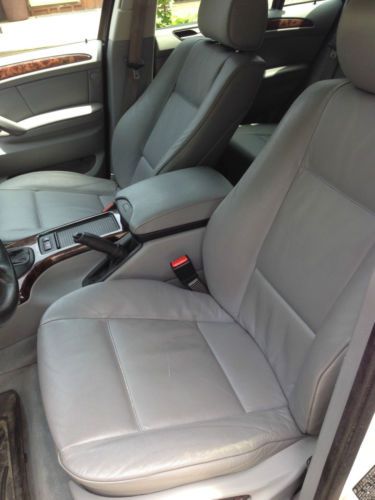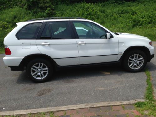 2004 BMW X5 with 3.0 I6 trim. Car is Alpine White with gray leather interior. Automatic with sport and semi manual mode. Front and rear A/C. Recently had new front brakes and rotors put in, as well as new rear brake pads, new front axles, and brand new battery. The SUV has the normal hi-fi audio system which I added a BMW factory auxiliary audio input to so any device can played through the stereo via the use of a headphone jack. Has 147XXX miles on it, a very large portion of which are highway. The car is not currently being used so mileage will not go up. It comes equipped with the tow package (and is very capable of pulling heavy loads) as well as the cold weather package that includes heated front seats and downhill descent control (which administers the brakes for you during the descent of a steep hill to limit slip during in-climate weather, and works very well) and rubber all weather mats. I am the third owner and have never had any major problems with the car during the years I've owned it. Perfect for the winter as it's absolutely fantastic in the snow, and got me everywhere I needed to go even in the middle of a blizzard. The interior is comfortable and very roomy, fits five people very comfortably and the rear seats fold down for even more cargo space making it very useful for transporting nearly anything you may need. Has the panoramic roof option, power everything, HID Halo headlights, and sun shades on the rear windows to keep the light and heat out. The car is in very good and clean shape with only a slight ding or scratch here or there, normal of any car this age. Car can be picked up locally or shipped wherever via a company of your choice. Serious bidders only, no returns. Please feel free to ask any questions and happy bidding.