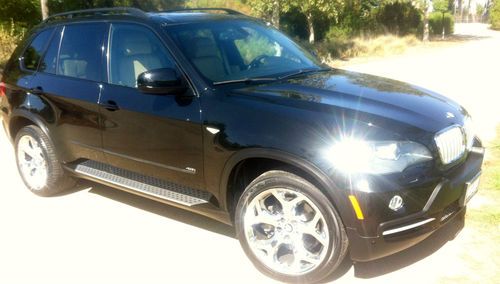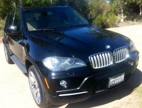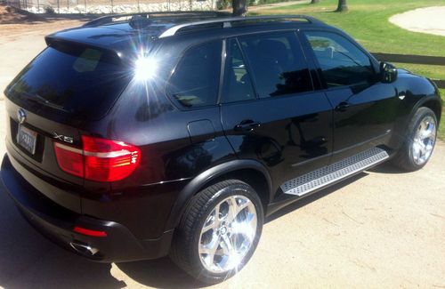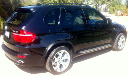 This 2007 BMW X5 4.8i is a ONE OWNER Woman Driven Car. Black Sapphire Metallic Exterior with Sand Beige Nevada Leather Interior. The BMW extended warranty is good until 8/30/13 so you can go through this car with a fine tooth comb and if you find something wrong, it will be taken care of. The car has always been garaged and serviced at Bob Smith BMW. All of the maintenance records are available as well. There are 2 keys, all of the manuals and even the original window sticker. This car shines like a new dime and is FULLY LOADED with EVERY POSSIBLE OPTION you can think of. The car has 79k on it and feels like it's brand new.