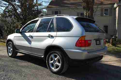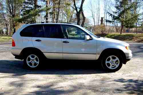 THis is a one owner, properly serviced 2001 BMW X5 all wheel drive SUV, she drives out beautifully. 3.0 Liter 6 cylinder engine, auto trans, tilt wheel, cruise control, dual power seats, leather, power moonroof, windows, locks and mirrors, rear wiper and defroster, front and side air bags, factory alloy wheels, good tires up front, rears are Ok but will need to be replaced this year. New synthetic oil change, front brakes are 80%, rear brakes are brand new, front left and right side axles were just replaced. This vehicle starts right up and drives great. car fax shows no accidents and 20 service records. call us at 215-862-9555 with any questions. Price excludes tax, tags and doc fee of $149.50 the vehicle is located in New Hope, Pa...we have been here in business since 1985. thank you, call us with offers.