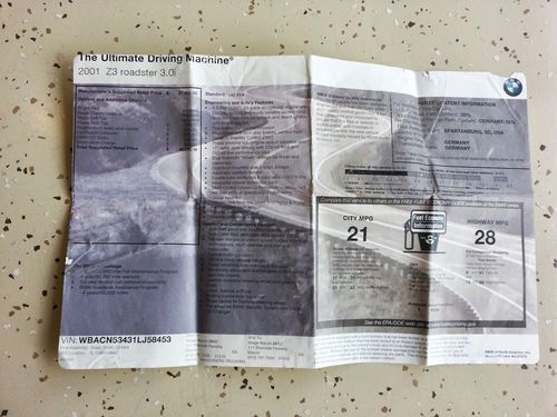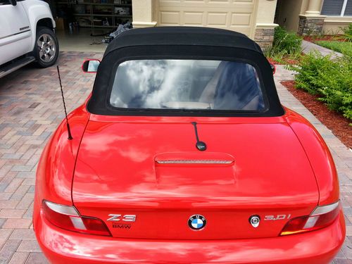 2001 BMW Z3 Convertible, 3.0I, Bright RED, On Board Computer, 5 speed, Original window sticker $40,295.00. Loaded, Power and heated seats,windows, power top, mirrors. Harmon Kardon premium sound system. Leather seats. Excellent fuel economy. 17 inch wheels, 225/45 front tires, 245/40 rears all good shape. New Rear Window, Wind Screen, Surco Luggage Rack, Trickle Charger, Full BMW Cover. Always Garage Kept. Ready to run, Needs NOTHING!!!!