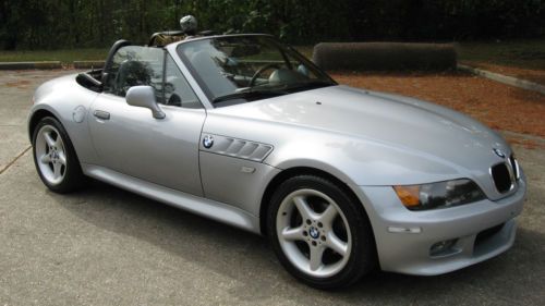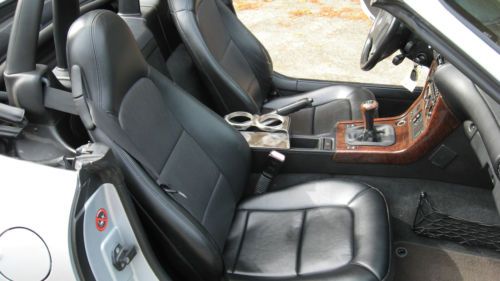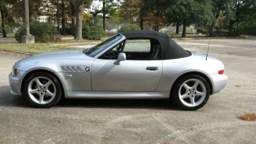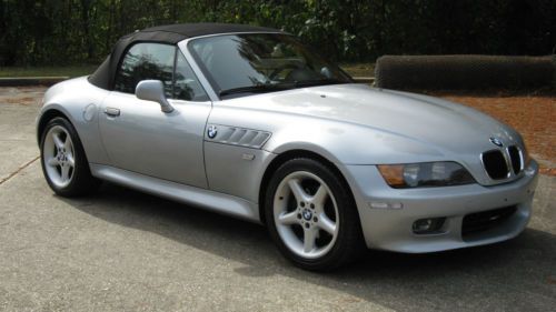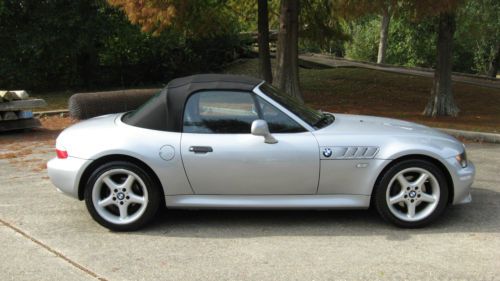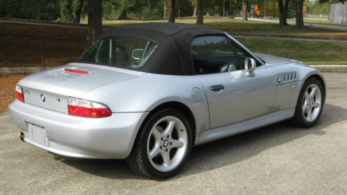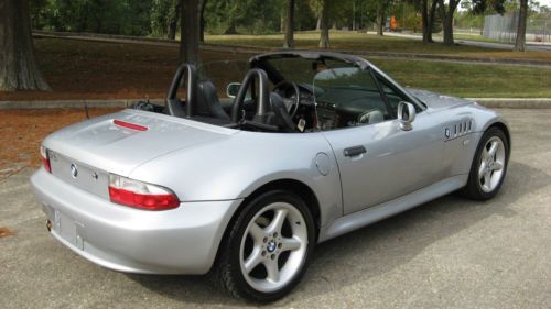 Hello and up for auction is an extremely well kept 1998 BMW Z3 with the 2.8 Liter inline 6 cylinder engine. The color combination is a beautiful Silver Metallic over Black leather with a new black canvas top recently installed. The History on the Z3 is as good as can be found with no accidents or other negative comments and I have a copy of the Carfax I pulled just a few weeks ago. The car was originally leased in Georgia and was then purchased by the original owner who adored the Z and eventually passed it down to his son in law who I bought the car from. So basically the car has had only 2 owners and is fully serviced needing nothing. The body of the Z is in excellent condition as is the interior with no tears or stains anywhere and has never been eaten or smoked in. The tires ( all 4) are brand new Goodyear V rated sport tires and have 95% tread life left. This Z also has the sought after wide-body design only available in 97-98 and the 98 is the one to have with the roll bars coming out that year. This Z also has the rare 17" sport package 5 star wheel which really makes the Z stand out from the rest of the crowd with a much sportier look. The Mileage is very low for the year and is currently right at 60,300 and drives very tight. The Z starts right up every time and has no issues what so ever. There are no service lights on and as stated earlier everything works great from the AC to the Cruise Control. I work for BMW and all my friends are Master BMW technicians so I tend to keep my cars in excellent shape. Please read my feedback from others who have bought Zs from me in the past as it is 100% and stellar. I know these Zs better than most and fix all the annoying things that most pass on like the seat checks that most sellers neglect to fix at $400 per seat. Please read below what has been completed below to ensure a quality Z for years to come.