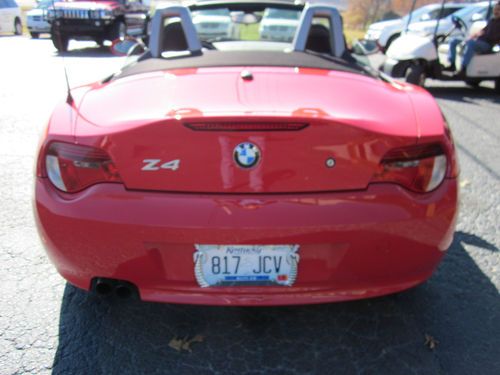 THANKS FOR LOOKING AT OUR Z4 CONVERTABLE, LOW MILEAGE, I'M SELLING FOR A PERSONAL FRIEND WHOM NO LONGER FINDS A NEED FOR IT, SO HIS LOSS IS YOUR GAIN, THIS ONE STILL HAS BMW WARRANTY TILL 2014, I THINK JULY. NEVER ANY ACCIDENTS OR ANY TROUBLE, RECENTLY SERVICED BY BMW, SUMMER TIME FUN AT IT'S GREATEST, THESE CARS ARE SO MUCH FUN TO DRIVE, WE WILL ACCEPT OFFERS, SO IF YOUR OFFER GETS ACCEPTED THEN WE WILL END THE AUCTION. I CAN BE REACHED AT 270-999-0426 TERRELL.