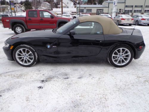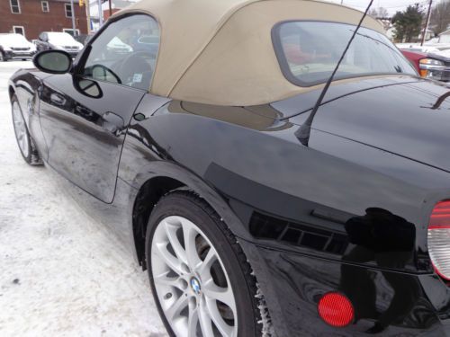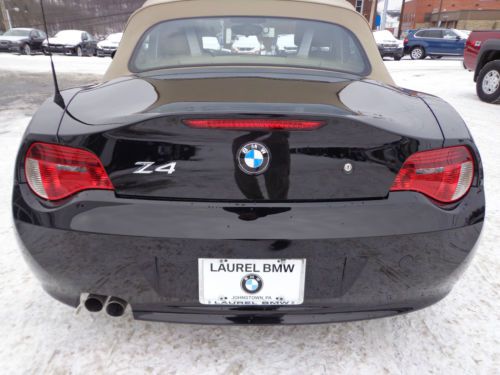 YOUTUBE VIDEO WARRANTY SINCE THIS BMW IS CERTIFIED, THE NEW OWNER WILL RECEIVE A 6 YEAR / 100,000 MILE COMPREHENSIVE WARRANTY AND IS VALID FROM THE ORIGINAL SALE DATE WHICH WAS MARCH 27TH, 2009. WE ALREADY COMPLETED ALL RECOMMENDED SERVICE INCLUDING OUR 200 POINT INSPECTION AND COMPLETED A FRESH OIL CHANGE AND NEW STATE INSPECTION FOR THE NEW OWNER! CONDITION WOW, WHAT A SHARP, CLEAN, 2008 BMW Z4 3.0i CONVERTIBLE COUPE 3.0L L6 AUTOMATIC TRANSMISSION REAR WHEEL DRIVE IN JET BLACK PAINT AND BEIGE LEATHER SEATS WITH ONLY 15,345 MILES! THIS BMW WAS BEAUTIFULLY MAINTAINED. GARAGE KEPT, NON-SMOKER VEHICLE AND INTERIOR IS FREE OF ANY ODORS OR MAJOR FLAWS. CLEAN TITLE AND CLEAN CARFAX REPORT WHICH WE HAVE ON HAND FOR ANYONE WHO WISHES TO VIEW THEM. THE FULL HISTORY REPORT CAN BE EMAILED UPON REQUEST. TIRES ARE ALSO EXCELLENT AND WELL OVER 85%. WE ALSO JUST SERVICED THIS BMW AND ALL RECOMMENDED SERVICE HAS BEEN COMPLETED. I WOULD RATE THIS Z4 CONVERTIBLE A 9 OUT OF 10. I COULD ONLY FAULT THIS BMW FOR SOME TYPICAL STONE CHIPS OR SO AND A FEW LIGHT SCRATCHES AND I TRY TO SHOW ANY FLAWS ON THE VIDEO PROVIDED. I PERSONALLY TEST DROVE THIS BMW AND IT FEELS JUST LIKE A BRAND NEW VEHICLE AND IS A TON OF FUN TO DRIVE! WE JUST COMPLETED A NEW PA STATE INSPECTION ALONG WITH A FRESH OIL CHANGE AND DETAIL ALONG WITH A FRESH INSPECTION AND SERVICE. IF YOU ARE SEARCHING FOR A CLEAN, WELL MAINTAINED BMW Z4 CONVERTIBLE COUPE AND IN A GREAT COLOR, THIS IS YOUR NEW CAR! THANK YOU FOR VIEWING AND BE SURE TO VIEW ALL 24 PHOTOS AND THE CARFAX REPORT ALSO INCLUDED WITH THIS LISTING AND ONLY 15,345 MILES!!!!! CARFAX REPORT