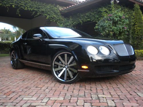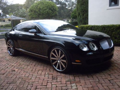2005 BENTLEY CONTINENTAL GT COUPE BLACK WITH BLACK INTERIOR, W RED STITCH, PIANO WOOD TRIM, MULLINER SPECIFICATION, 22'' GIANELLE SPORT RIMS AND ORIGINAL WHEELS SET,AND MUCH MORE.