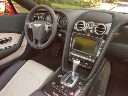 This new 2014 Bentley GT Mulliner Convertible with a must see interior. Fitted out in St James Red paint with Quilted Linen on Beluga hides and Linen contrast stitching giving it a unique upscale interior accented nicely with warm Burr Walnut wood veneers. Options Include: Mulliner Driving Specification Package w/drilled allow sport foot pedals, Mulliner Wheels, chrome and leather wrapped gear shift and Diamond quilted leather, Embroidered Bentley Emblems, contrast stitching in Linen, additional stitching in contrast to steering wheel, Jewel filler cap, knurled sports gear lever, dark stained burr walnut wood veneers, Ventilated and massage front seats, deep pile carpet over mats, rearview camera, valet key, space saving spare wheel, 6 CD Changer, Burr Walnut Veneered Glasses Case, contrast stitching to steering wheel, satellite radio, touch screen satellite navigation, iPod adaptor, Bluetooth....It is a perfect example of gorgeous British craftsmanship and styling. Lease and finance options are available on this coupe. Come see for yourself. Contact a Bentley sales specialist today for more information or to schedule a test drive 888-644-5155. |