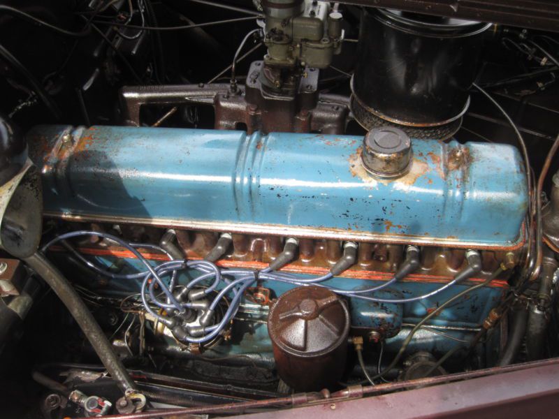 Dynaflash straight eight engine, 3 speed manual column shift transmission, leather upholstery, dual side mounts,