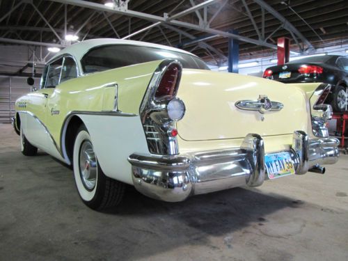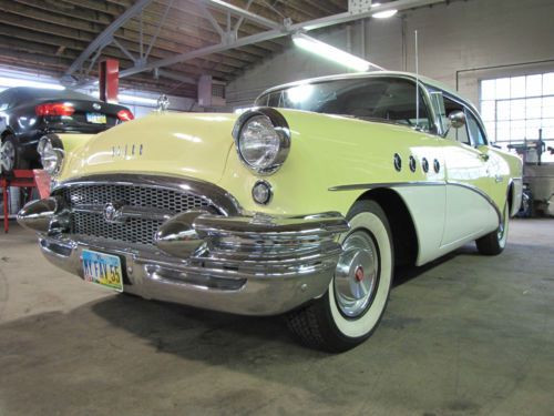 Buick Club of America owner. Buick Bugle Magazine Cover Car February 2013. Documented T.V. History (Price is Right - May 2, 2012). Believed to be just 54,850 miles. Exceptionally solid vehicle even in the most rust prone areas. Has the factory 322 V8. Absolutely no smoke, shakes or wobbles, drives and stops straight and drives exceptional. Has a lot of power and is very responsive. Keeps up with modern day traffic with no hesitation. Has no signs of accidents and truly drives like a dream. Original color code BUU (Condor Yellow over Dover White). Vehicle was built in Southgate, CA, spent its life in the Van Nuys/Santa Monica area and came to my garage just a couple years back. For the meticulous eye, I'd say a reupholstering of the back seat could be done. Steady trophy winner. Excellent for a driver or collector and definitely ready to go as-is. Prices of options in '55 on this highly optioned, factory-installed vehicle: PS ($107.50), PB ($38.70), Variable Pitch Dynaflow auto trans ($192.50), E-Z-Eye glass ($32.30), Safety Group - backup lights, parking brake warning light, windshield washer, and glareproof rearview mirror ($32.30), Sonomatic Radio with Manual Antenna ($92.50), WeatherWarden Heater/Defroster ($81.70), and Whitewall Tires ($31.20). Just replaced front wheel bearings, generator rebuilt, under-hood insulation including "sombreros", professionally buffed, updated wiper motor to electric, refurbished gauge cluster and speedometer, horn works, emergency brake works, backup lights work, all dash lights work, all windows work, radio works, heaters work, even the clock works (just had it refurbished too). Very Flashy. Solid body. Rare in this gorgeous condition. Serious inquiries only please. Not urgent to sell but we have a baby on the way.