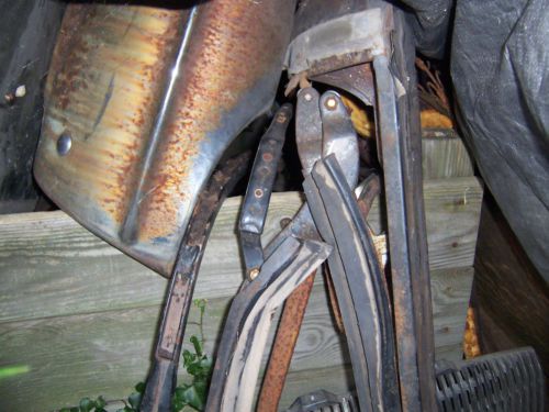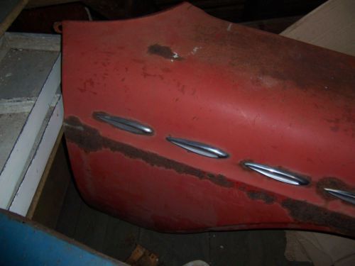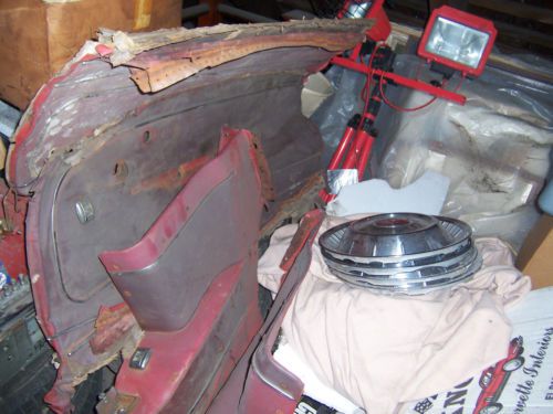 1957 Buick Century Convertible, a real red /red car very rare but incomplete This is where the eye rolling starts and the timid lose interest. This car was a very original complete car when it was sold to the owner of a restoration facility in 1995. The facility took the car apart, completely apart and sent the body and frame to a shop for blasting and repairs. The primed frame is pretty decent from what i can see, the body shell has floor rust, some rocker rust, nice quarters, some trunk rust out, particularly in the wheel well. The car has the vin plate on the door post and the trim plate on the cowl. That plate reads 57-66c, 57-4667x,3895, 600, 1MM,bfgj. So its the real deal, a very rare color combination when red and white was popular and this is double red. So much for the good part! I have a copy of the title and the owner of the shop who bought the car promises the actual title is available in his records but i have NOT seen it yet. Hmmmm. I purchased everything as is but i have a great relationship with shop owner and he will help . The rest of the parts. A partial list of the actual parts i have which came off the car are as follows. Fenders not bad, hood, trunk, doors one dented, stainless trim, bumpers, 2 57 grilles one real nice, most if not all other chrome like headlight trim, window frames etc. Some extra chrome. Top assembly frame , steering column, wheels, many wheel covers, the entire rear end, the dash, at least the front seats, the rear interior side panels, radios, door interior panels, window glass and chrome trim and vents, tons of misc mechanical parts and trim parts. MISSING..DRIVETRAIN, WINDSHIELD,FRONT SUSPENSION. This is the right car for someone with a running 4 dr. parts car or someone who collects 57 buicks. i have a lot of nice 56 buick stuff as well but they are not in this sale.....yet. I realize this is a bizarre listing but i want to try it out and will be happy to talk to serious interested parties if it doesnt sell at auction. I really want the buyer to come see it, i will be happy to put them up if they provide info that make me and family feel secure. I would prefer to answer questions in direct emails but may struggle through them and post them. i dont expect this to be an easy process but i am praying for someone to come along who knows what this is and has the where-with-all to deal with a project of this scope. thanks to all for being understanding. |