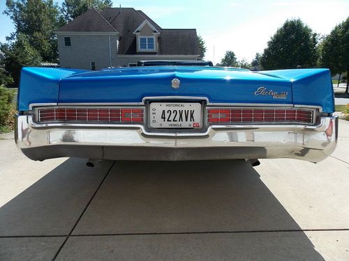 Here is a very sharp and very clean 1969 Buick Electra Convertible. You can jump in and drive this car across the country with confidence! Great family cruiser with 6 seat belts! Original 430 cubic inch motor was recently totally rebuilt (.030 over) and runs like a champ. Newer belts, hoses, wires and battery. Car is loaded with options including power windows, 6 way power seats, power steering and power brakes (recent brake work also done). Trans shifts like it should and the brakes are in great shape! Newer exhaust system sounds great! New JVC AM/FM CD radio and speakers that sounds great (also MPS and satellite radio ready)! This car has been very well maintained over the years and I have a lot of receipts for the recent work. Original interior still presents well but does have a few small seam splits and is a bit faded in spots. The carpet is newer. It has had a recent repaint (base coat and clear coat) that shines up nice and presents very well (no rust). Original trim is all present and in nice shape! Bumpers are original and are dull in spots but presentable as a driver. Floors are solid and have been cut and patched in a few spots but look to have been done correctly. Frame and trunk pan are all solid and the car has been undercoated at some point. Power top works great. Convertible top with glass window was replaced at some point and is in nice shape as well as the top pistons and read glass window. Original convertible top boot has shrunk a bit so I do not have it on the car but it does come with the car. Original wheel covers are in very nice shape. Radial tires are newer and have plenty of tread left. Clean engine compartment. Also comes with a car cover, repair manual and a few extra spare trim parts. This car turns heads wherever you go! Here is your chance to purchase a classic convertible at a reasonable price!