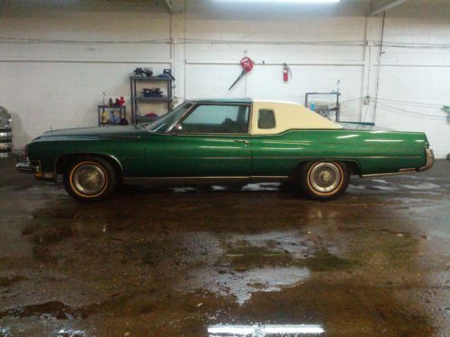 I have a 1owner title 1973 buick electra 225 ltd that is in good condition and runs good. This is a southern car which was garaged kept and never seen snow til this year. This is a rare car which only 2 were made from the factory with this color and options. The under carriage is not rusted out. Car has new shocks all the way around as well as springs, tires and recent brakes. The car has all power options that came out this year. The exterior is a 8 out of 10 and the interior is a 9 out of 10 with the dashboard having no cracks and the vinyl top looks new. Would not take much time or money to make this car mint. Car is for sale locally so i have the right to end the auction early. Bidders with negative feedback must contact me first or i will retract your bid. Thanks for looking and goodluck bidding cause this is a great driver or collector vehicle. I have the fender skirts in the trunk which is in great shape also.