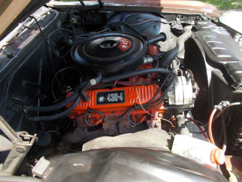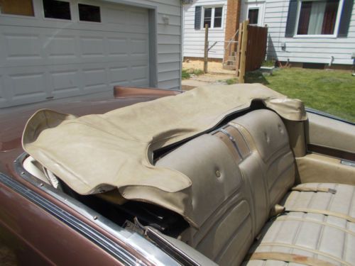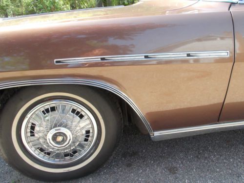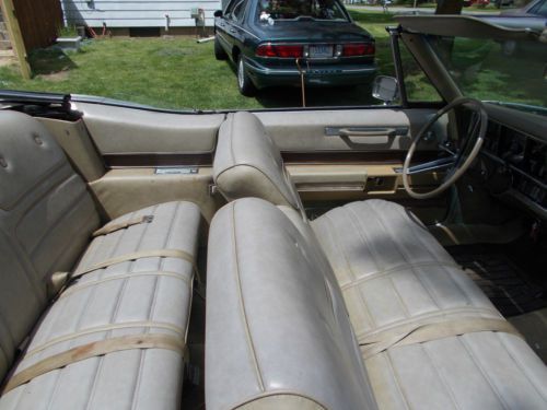BEAUTIFUL BUICK ELECTRA 225 WITH THE ORIGIONAL ( I BELIEVE) 430-4BBL. ENGINE. HAS JUST OVER 79,000 ORIGIONAL MILES ON IT. COMES WITH DUAL EXHAUST, ORIGIONAL CONVERTABLE BOOT THAT SNAPS ON, AND BOTH REAR WHEEL SKIRTS WHICH WILL NEED TO BE FITTED TO THE CAR AND PAINTED TO MATCH. CAR WAS PAINTED AND HAD NEW CONVERTIBLE TOP PUT ON ABOUT 3 YEARS AGO. BODY HAS SOME SMALL "FEATHERY" SCRATCHES ON IT AND ONE OTHER SCRATCH THAT IS SMALL, BUT NEEDS TOUCHED UP. CAR ALSO COMES WITH ADDITIONAL COOLING FAN FOR RADIATOR TO DRIVE IN PARADES. THE BUICK VIN. NUMBER STANDS FOR 4= BUICK, 84=ELECTRA 225 CUSTOM, 67= CONVERTABLE, 8= 1968 ( MFG. BETWEEN SEPT. 1967 AND SEPT. 1968, H= MADE IN FLINT MICHIGAN. ONLY 7976 OF THIS MODEL WAS EVER MADE. WE HAVE LOVED OWNING AND DRIVING THIS CAR, BUT WE ARE DOWNSIZING, AND IT'S TIME SOMEONE ELSE ENJOYS IT. SHIPPING OF VEHICLE IS TO BE ARRANGED AND PAID FOR BY THE BUYER.