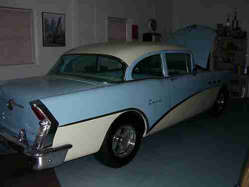 1956 Buick Special 2 door sedan Lt. Blue and White two tone. Original 37,976 mile car. Original 322 nailhead motor, automatic transmission and blue interior. Power brakes, power steering, factory tinted glass. All in excellent condition. Old school american racing wheels and black wall tires. Also comes with original wide white wall tires and original wheels and hubcaps also in excellent condition. 2nd owner. You do not see these cars everyday. Garage kept all it's life. Car is also for sale locally, it may be pulled at any time.