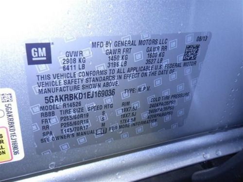 VIN (Vehicle Identification Number): 5GAKRBKD1EJ169036