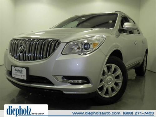 $4000 total available rebates! Ready for anything!!! NEW 2014! Leather, HEATED LEATHER, REMOTE START, FORWARD COLLISION ALERT, REAR VIEW CAMERA, UNIVERSAL HOME REMOTE and much more! CLICK in for MORE details! **INVOICE and BELOW pricing available** for Internet Buyers, BIG savings possible -------------------> Call, text or email Matt Sears for more details (matt_sears@diepholzauto.com, phone: 888-903-5117). PLEASE call in advance to check availability, inventory changes quickly! .................................... FULL DETAILS: NEW 2014 Buick Enclave. No trip is too far, nor will it be too boring*** This is the vehicle for you if you're looking to get great gas mileage on your way to work.. Standard features include: CD player, OnStar, Satellite Radio, Leather seats, Bluetooth, Remote power door locks, Power windows with 2 one-touch, Heated drivers seat, Automatic Transmission, 4-wheel ABS brakes, Air conditioning with dual zone climate control, Rear air conditioning - With separate controls, Cruise control, Audio controls on steering wheel, Xenon headlights, Universal remote transmitter, Traction control - ABS and driveline, Driver memory seats, Memory settings for 2 drivers, Multi-function remote - Trunk/hatch/door/tailgate, remote engine start, Heated passenger seat, 8-way power adjustable drivers seat, Head airbags - Curtain 1st, 2nd and 3rd row, Passenger Airbag, 288 hp horsepower, 3.6 liter V6 DOHC engine, Tilt and telescopic steering wheel, Power heated mirrors, 4 Doors, Front-wheel drive, Fuel economy EPA highway (mpg): 24 and EPA city (mpg): 17, Tachometer, External temperature display, Compass, Power Activated Trunk/Hatch - Power liftgate, Rear spoiler - Lip, Clock - Analog, Stability control - Stability control with anti-roll, Trip computer, Interior air filtration, Speed-proportional power steering, Remote engine start, Daytime running lights, Signal mirrors - Turn signal in mirrors, Dusk sensing headlights, Reclining rear seats, Rear heat - With Diepholz Auto Group offers the most customer focused and friendly buying experience on the Internet. If earning your business means selling you a vehicle BELOW cost, OVER allowing for your trade, finding you the PERFECT vehicle or providing FLEXIBLE financing options, consider it done! We want you as a customer. View our inventory of over 300 new and used vehicles online @ www.diepholzauto.com