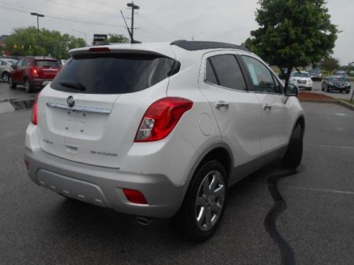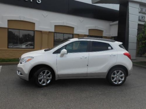 Encore Leather, ECOTEC 1.4L I4 DOHC VVT Turbocharged, 6-Speed Automatic, FWD, White Pearl Tricoat, Ebony Leather, and *ADDED FACTORY OPTIONS-POWER SUNROOF, WHITE PEARL TRICOAT, 18 CHROMED ALUMINUM WHEELS, NAVIGATION W/ INTELLILINK, 7 DIAGONAL SCREEN, BOSE PREMIUM AUDIO SYSTEM, ALL WEATHER FLOOR MATS*. STOOPS BUICK GMC-Proudly serving the Plainfield, Indianapolis, Mooresville, Greenwood and all surrounding communities for over 2 decades! There is no better time than now to buy this great 2014 Buick Encore. Add up all the hours you spend in your SUV each year, and you'll certainly appreciate the interior comfort of this Encore. Does not include rebates, tax, doc. Or any dealer added items. Some restrictions apply. ALL NEW VEHICLES ARE PRICED USING THE CURRENT FACTORY REBATES. SALES TAX, TITLE AND DOC FEE ARE NOT INCLUDED IN PRICE.