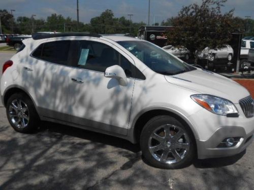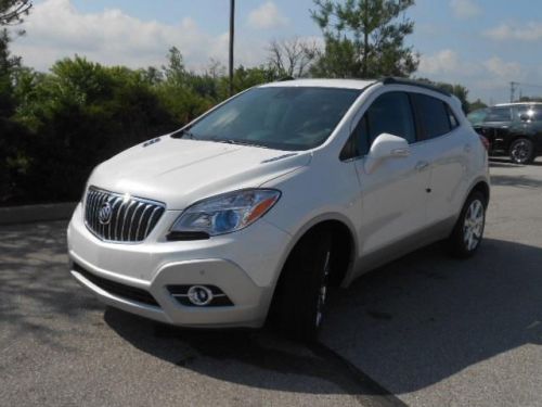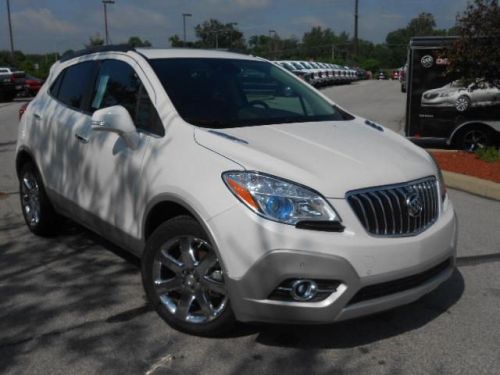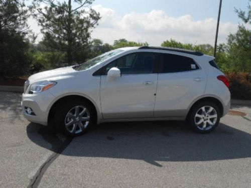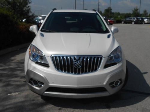 Encore Premium, ECOTEC 1.4L I4 DOHC VVT Turbocharged, 6-Speed Automatic, FWD, White Pearl Tricoat, Ebony Leather, and *ADDED FACTORY OPTIONS-POWER SUNROOF, WHITE PEAR; TRICOAT, 18 CHROMED ALUMINUM WHEELS, NAVIGATION, STEREO W/ INTELLILINK, 7 DIAGONAL SCREEN, ALL WEATHER FLOOR MATS*. STOOPS BUICK GMC-Proudly serving the Plainfield, Indianapolis, Mooresville, Greenwood and all surrounding communities for over 2 decades! If you demand the best, this superb 2014 Buick Encore is the SUV for you. Does not include rebates, tax, doc. Or any dealer added items. Some restrictions apply. ALL NEW VEHICLES ARE PRICED USING THE CURRENT FACTORY REBATES. SALES TAX, TITLE AND DOC FEE ARE NOT INCLUDED IN PRICE.
